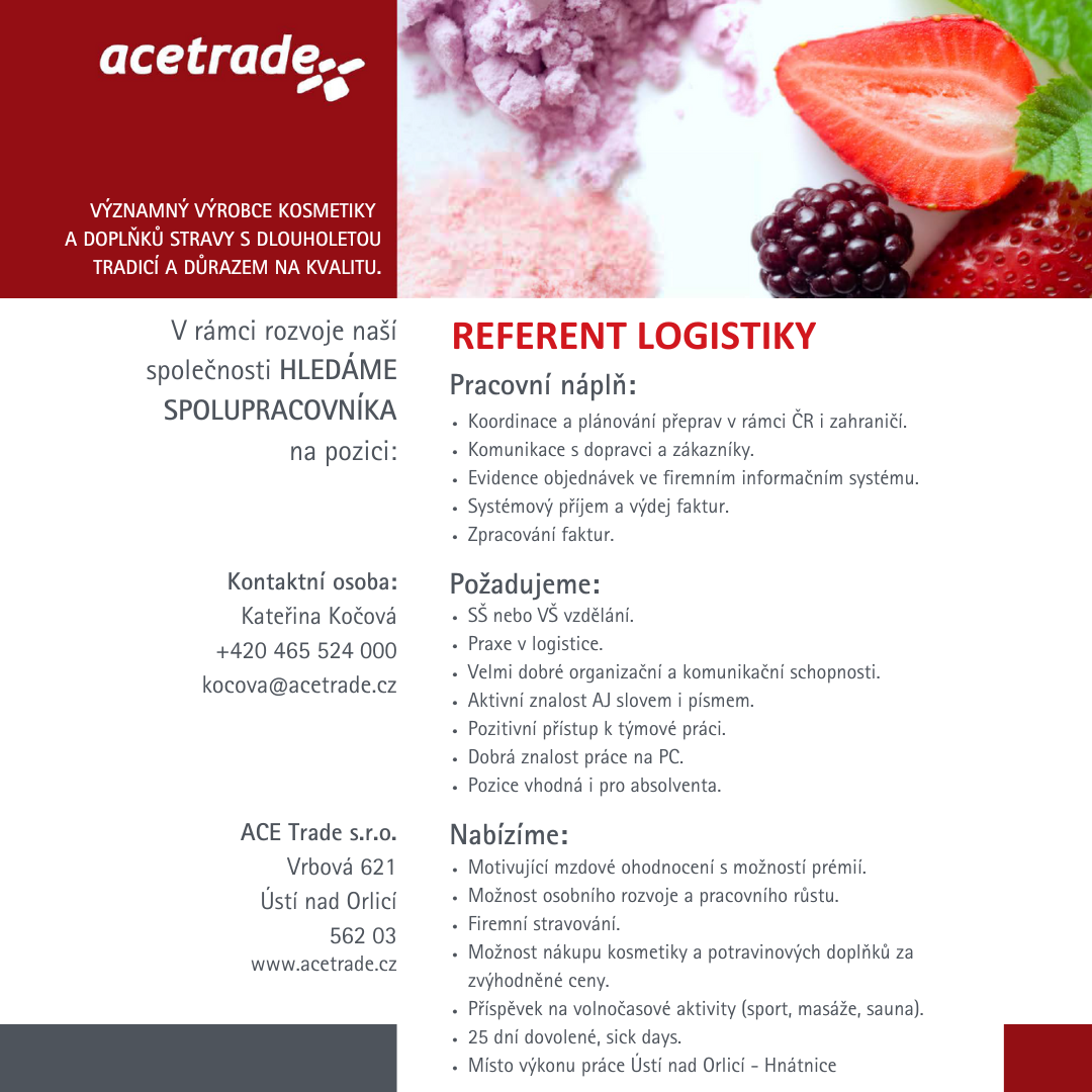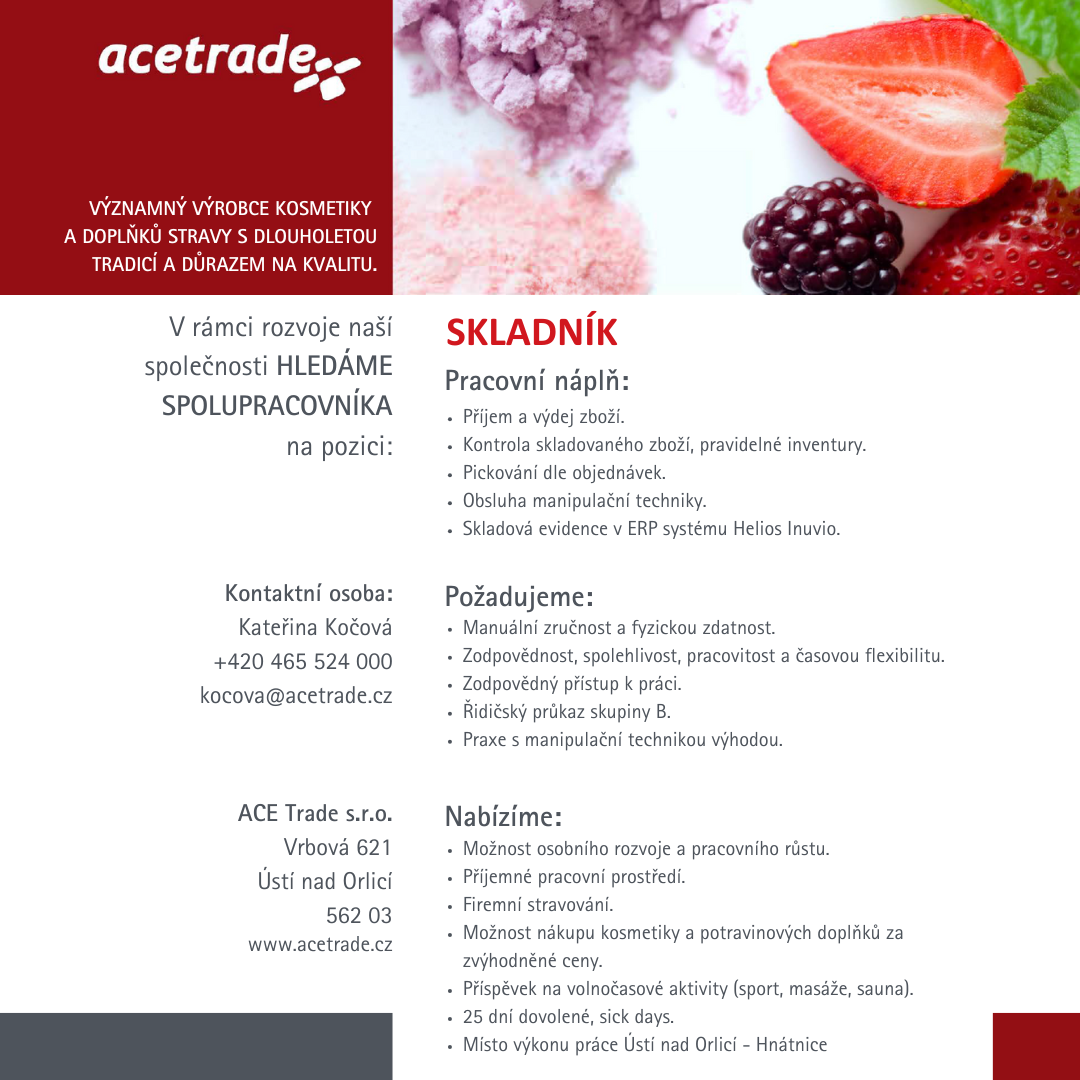 Aktuální přehled volných pracovních míst, na která naše společnost poptává uchazeče.